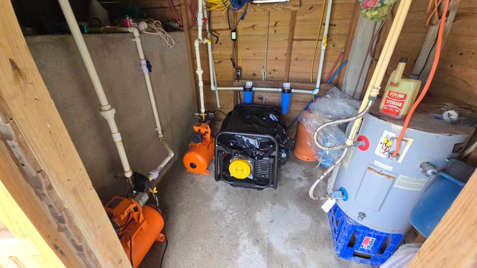 Designed for self-sufficiency and comfort, the property includes a private water well, a three chamber 15,000-gallon cistern, a whole house water filtration system, and electric water heater housed in the ground-floor bodega. The home is connected to the power grid and also features a backup generator. A large garage provides ample space for vehicles, tools, and storage.