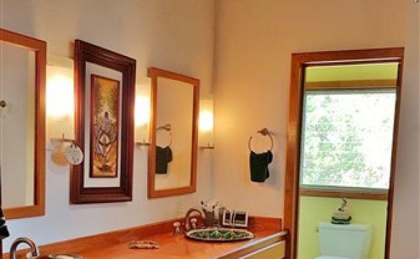 With three comfortable, roomy bedrooms, you can offer guests the option of staying longer. The large, spacious master boasts three walls of light with French doors on one and full double windows on two walls. Well lighted, custom built, open and ample closet space line the passage to the full, en suite master bath. The double vanity features hand painted ceramic basins. Two more bedrooms share a bath and there is a half bath in the common area for guests.